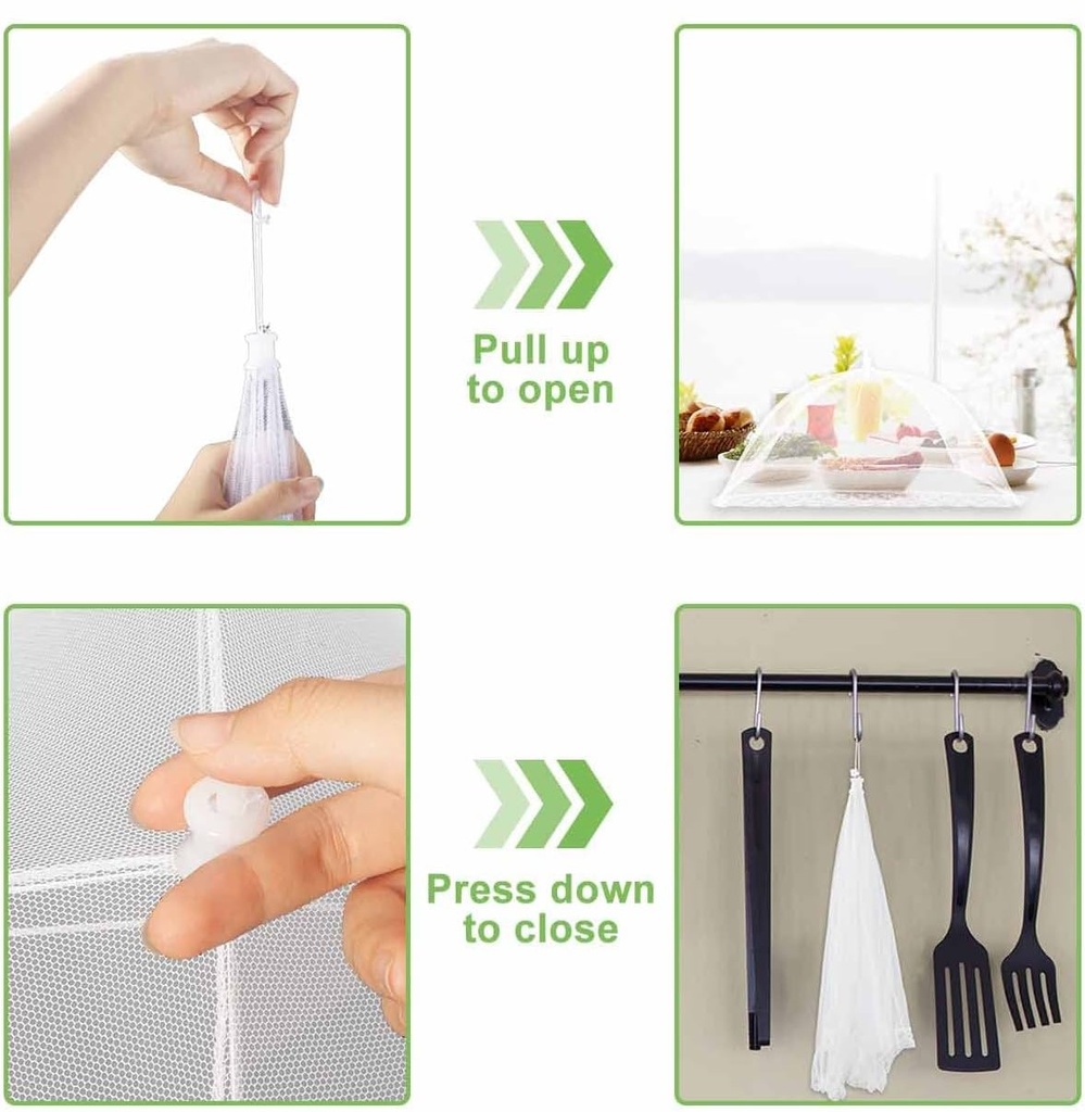 MANTENGA SU COMIDA SEGURA: HECHO DE MALLA DE NAILON DE ALTA DENSIDAD, NUESTRAS FUNDAS PROTEGERÁN SUS PLATOS DE INSECTOS Y ESCOMBROS, ASEGURANDO UNA EXPERIENCIA GASTRONÓMICA MÁS LIMPIA Y AGRADABLE.